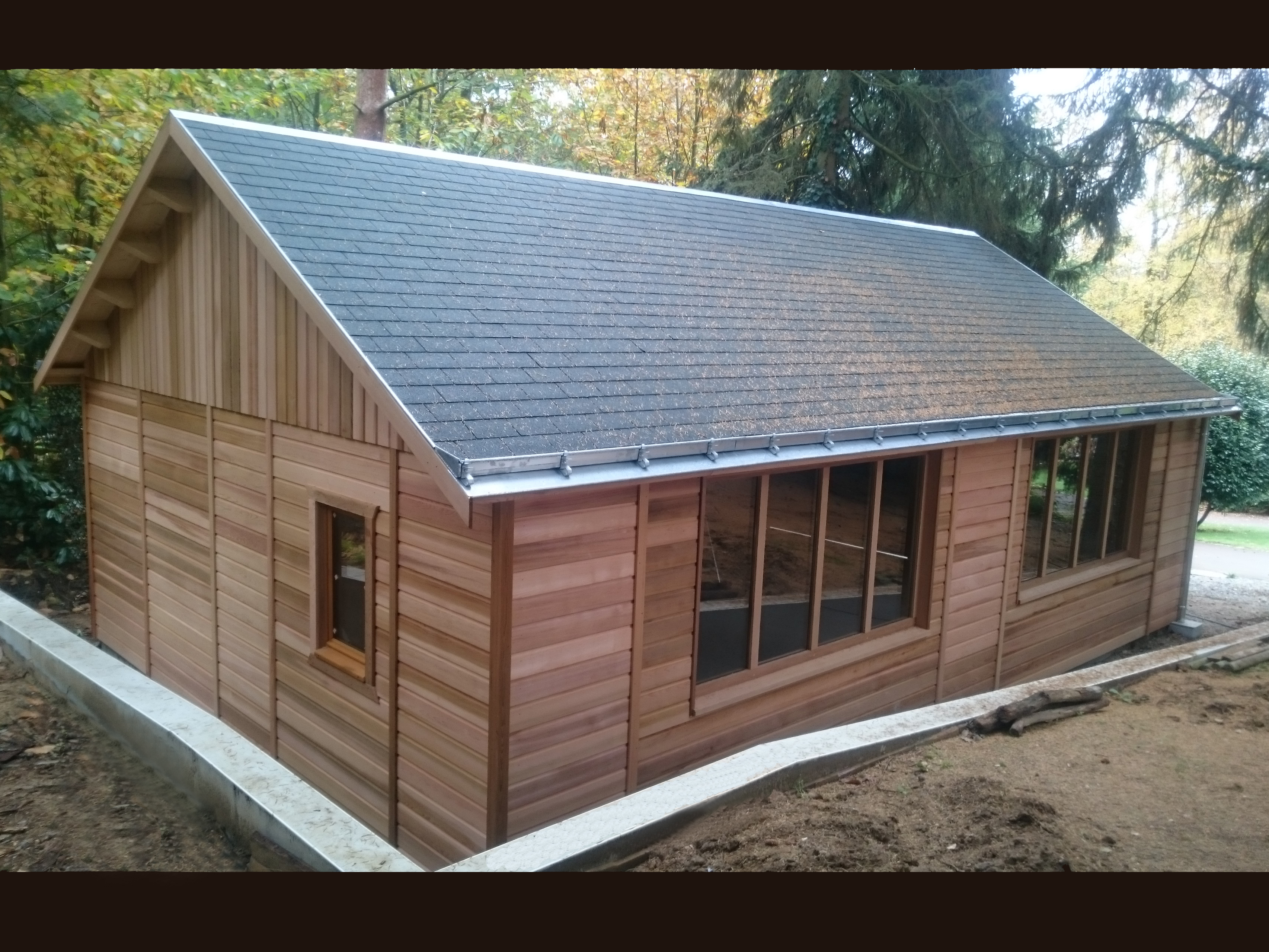 Bardage en autoclave, Douglas, Red Cedar ou bardage couleur assemblé sur ossature contreventée en sapin du Nord. Avec film pare-pluie suivant le modèle.